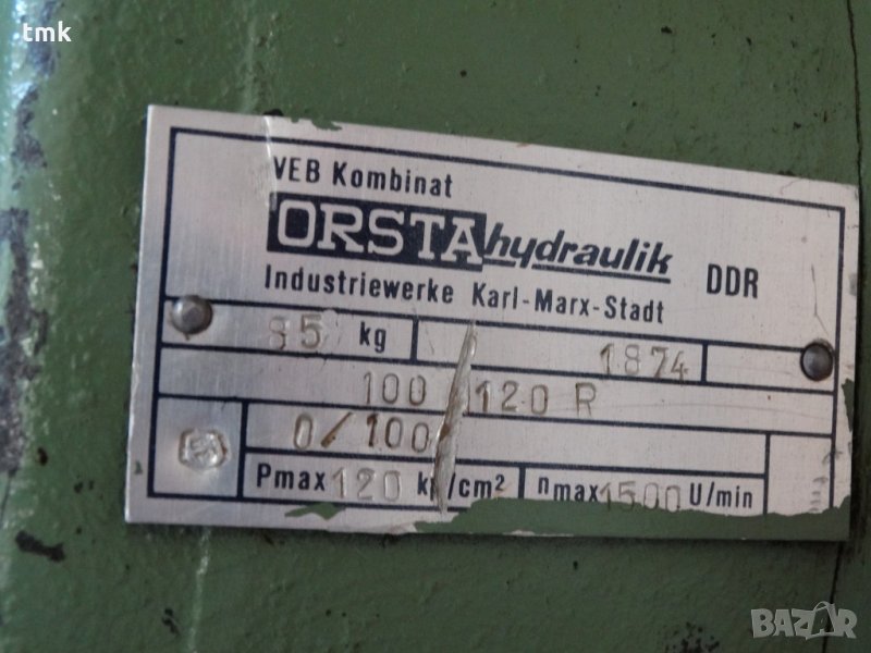 Фирма "Техно Маш Комплект" ЕООД предлага леко употребявана, но в отлично състояние и със запазени технически показатели немска радиално-бутална помпа, производство на ORSTA. Помпата е със следните параметри: