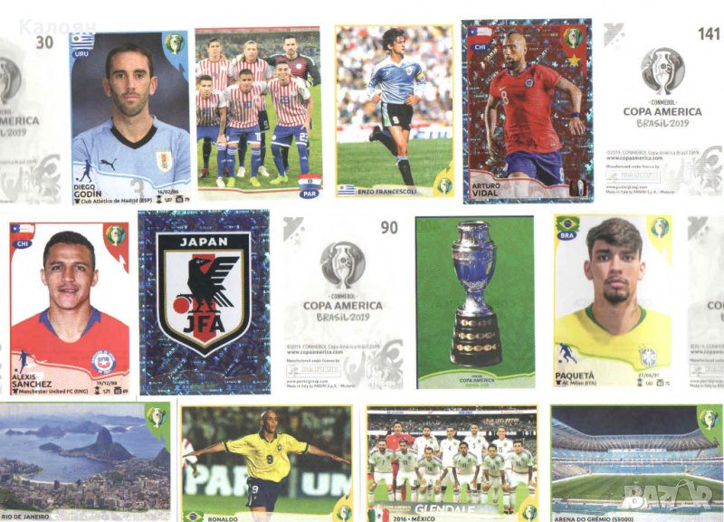 Албумът за стикери на Панини Копа Америка 2019 Бразилия е на цена 20лв, като цялата колекция се състои от 400 уникални стикери. Предлагам опция за отделно закупуване на отделни номера стикери на цена по 2лв на стикер (наличност 75%). За допълнително въпроси,информация и каквото и да е може да пишете на лично съобщение или да позвъните на даденият телефонен номер.