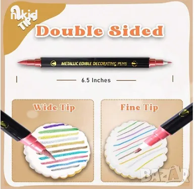 Сребро черен злато златен Маркер Флумастер Писалка двустранна сладкарска боя хранителен надпис → Обява 24854056