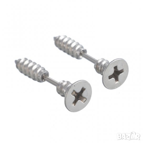 Интересни обеци във форма на винт за дърво. Стоят така все едно винта е завит в ухото :)