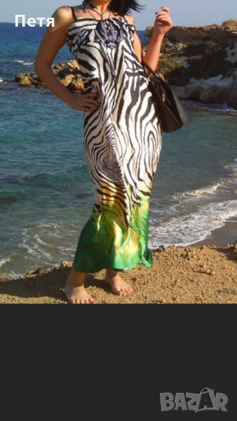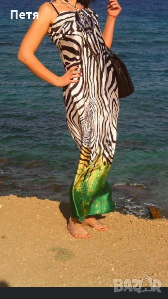 Дамска дълга сатенена зеброва рокля → Обява 24854552