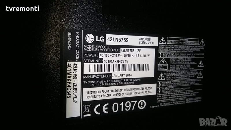 MAIN BOARD EAX64797004 (1.1) MAIN BOARD EAX64797004 (1.1) MAIN BOARD EAX64797004 EBT62700101 (1.1) LG 42LN575V панел LC550DUE(SF) (R1) тесвана от нашия техник