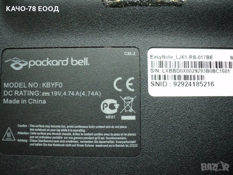 Лаптоп Packard Bell KBYF0 / EasyNoteLJ61
