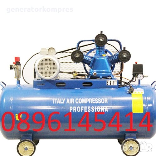 Предлагаме на Вашето внимание, Компресор за въздух italy с обем на съда 100литра и мощност 4.0НР. С колела и удобна дръжка за лесно транспортиране. Компресорът е създаден да генерира и съхранява въздух под налягане за инструменти работещи с такъв въздух.
