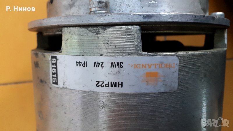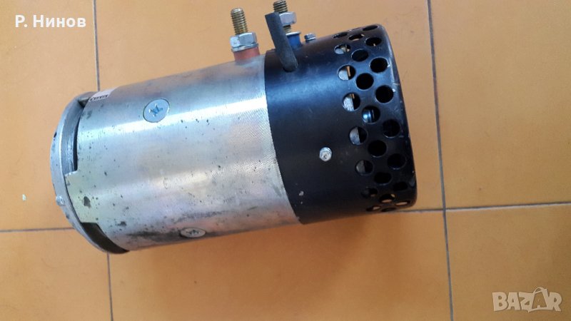 Правотоков ел.двигател със следните параметри: 24V, 160 A, 2300 min-1, 3kW, производство на фирма Dhollandia. Dhollandia ел.двигатели оригинално се вграждат като силов агрегат в мобилна хидравлика ( падащ борд на камион или ТИР), същия двигател притежава термозащита, която го предпазва от прегряване