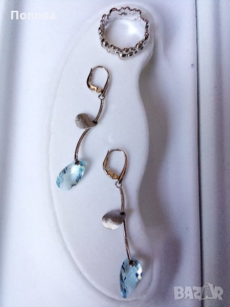 топази.Обеците са подвижни и моделът е единствен по рода си.Супер стабилно закопчаване.Няколко печата,включително и на бранда. 4,77 грама,дължина 4 см. Обеците имат сертификат от от магазина за злато , от който са закупени. Цената е без коментар.