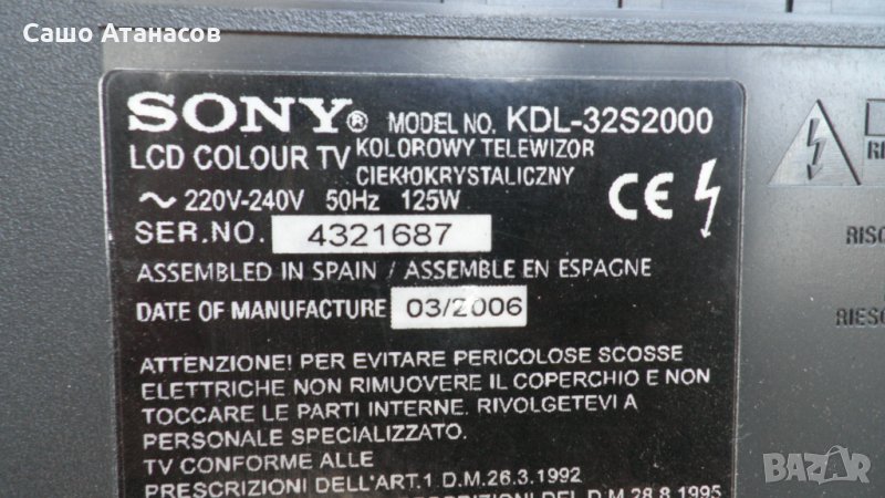 SONY KDL-32S2000 с повредена матрица ,1-869-132-31 ,1-869-852-12 ,1-869-656-12 ,320WSC4LV1.1