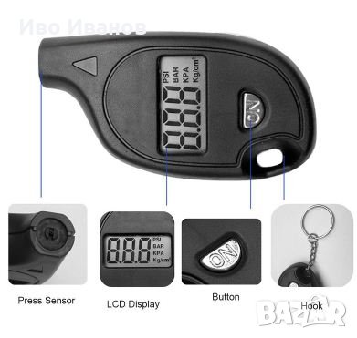 единици-BAR,KPа,PSI,Kg/cm. Подходящ за измерване на налягането на въздуха в гумите на автомобили,