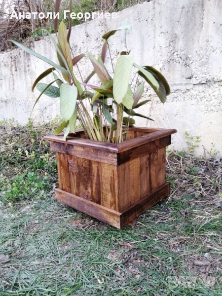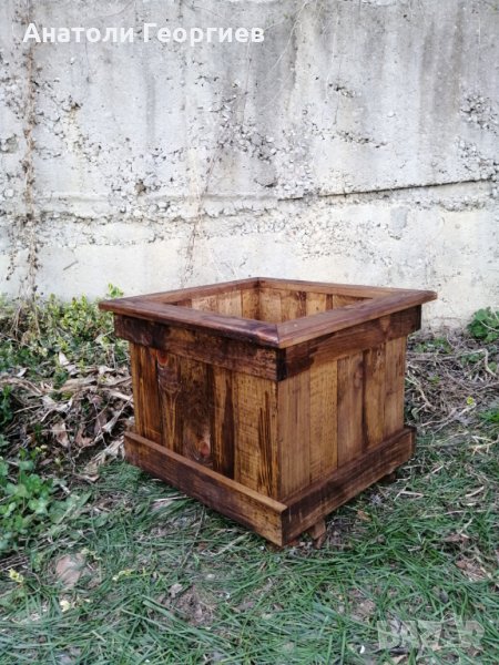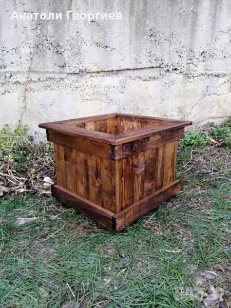 Дървени саксии, (кашпи) ръчна изработка от чамов материал. Размери 52 см. 55 см. Височина 45 см. Може да се направи по различни размери. Цена 90 лв. с первазна дъска отгоре Цена 100 лв.