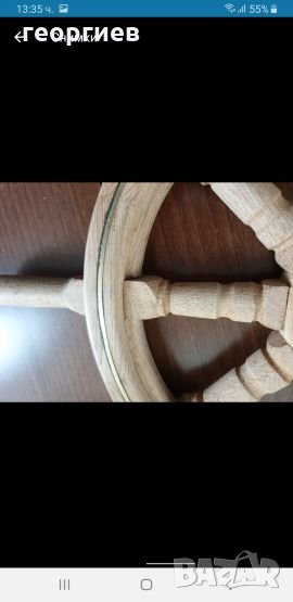 Щурвал за лодка или яхта. С месингови лайсни от двете страни и бронзова втулка. Материал дъб