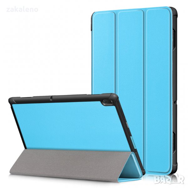 Висок клас кожени смарт калъфи с магнитно затваряне и прегъваща се предна част с функция стойка, както е показано на снимките. Външната част е изработена от качествена изкуствена кожа, а отвътре са покрити с мека подплата от велур. Кожата е приятна на допир, а същевременно достатъчно здрава и лесна за почистване. В задната си част калъфите са със здрав пластмасов гръб - идеална отливка на таблета, в който той перфектно ляга, без да се драска корпуса или да бъде под напрежение. Захващането е достатъчно здраво, няма вероятност от случайно изпадане на таблета. Пластмасата е устойчива и не се чупи или рони, както при повечето евтини калъфи. Имат всички необходими функционални отвори.