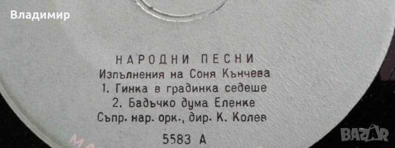 Продавам малки грамофонни плочи на "Балкантон" народна музика в изпълнение на: 1.Костадин Гугов - ВНМ 5718; 2. Костадин Гугов/Нада Стоянова 2617 ; 3.Илия Аргиров - ВНМ 5956; 4.Илия Аргиров - 2545 5.Соня Кънчева - 5583. Цена на всяка плоча 7 лв.
