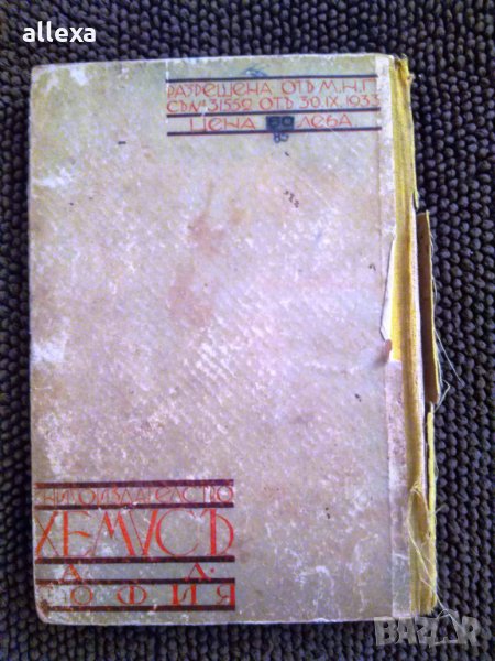 Книгата е с пожълтяване от старост, има дефекти по корицата, твърди корици, 1942г., 256 стр.