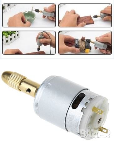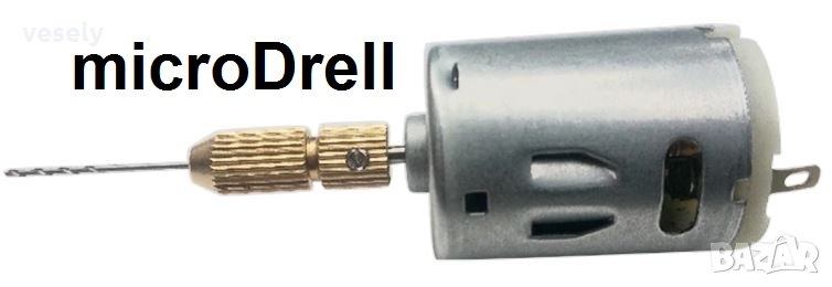 Микродрелка идеална за работа по печатни платки, моделизъм, гравьорство, Моторче =12Vc/ 500 mA, обороти 12000 T/min, свредла 1 – 3 mm, размери 41mm*27mm. цанги 1-3.2 мм