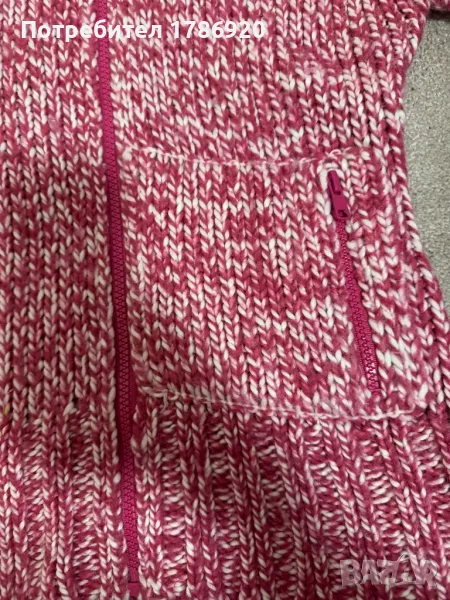 Продава се дебела и топла жилетка на марката Bershka, изработена от качествени материали: 28% вълна, 66% акрил и 6% найлон. Жилетката е в красив преплетен цикламено-бял цвят и е със стандартна дължина. Има пълен цип отпред и един практичен джоб с цип.