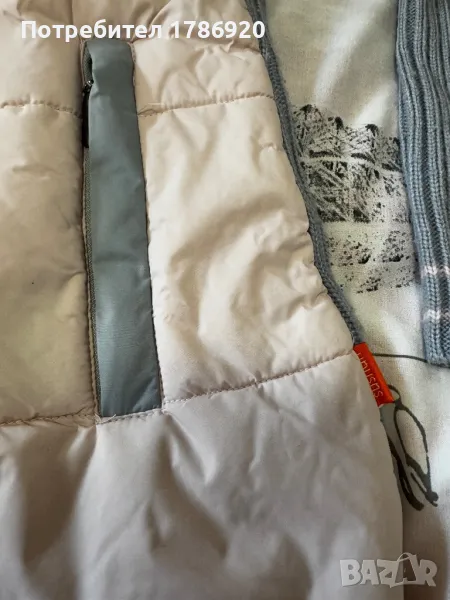 Продавам уникална жилетка Sushan, която комбинира спортен и елегантен стил. Предната част изглежда като яке – изработена от текстил в много светло розово, а гърбът и ръкавите са плетени в сив цвят.