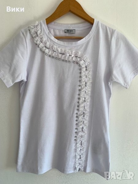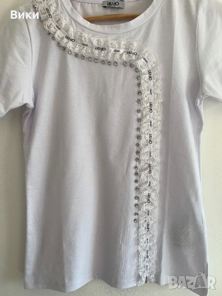 Бяла тениска Liu Jo с дантела и лого → Обява 24948401