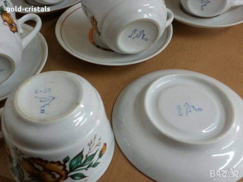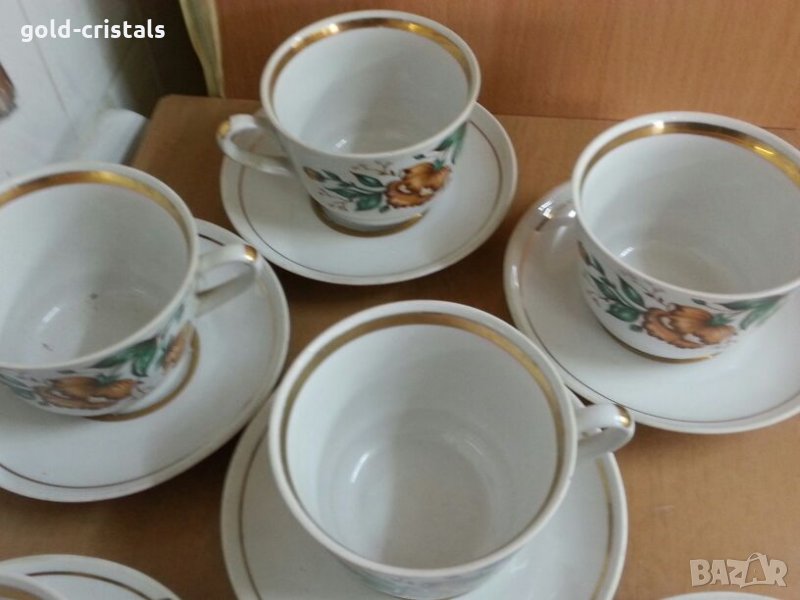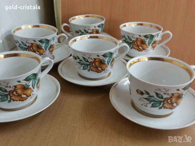 Ретро руски порцелан чаши за чай с златен кант маркирани 6бр чаши 6бр чинии една от чашите лека забежка последна снимка съветски ссср комплект сет лот ретро арт декор винтидж колекция стари антикварни предмети обзавеждане за дома и семейството съветски ссср стари антикварни предмети обзавеждане за дома и семейството подходящи за подарък за ценители и колекционери