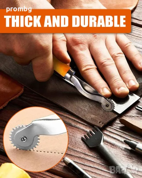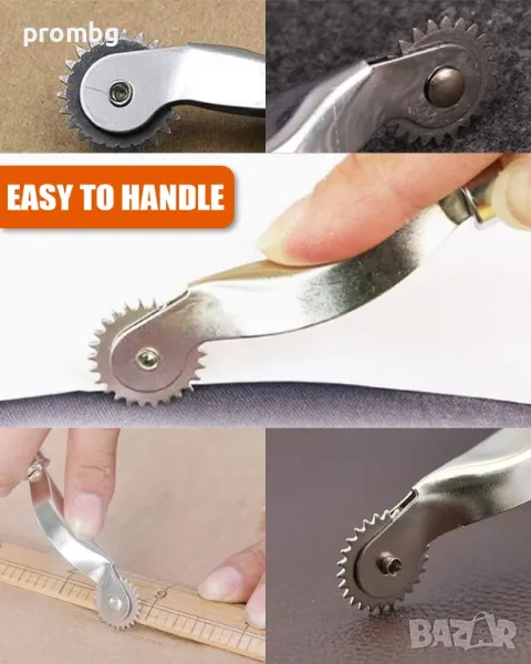 кожарски колела за маркиране на шев. Колелцата са с 3 вида върхове: остри и заоблени. Разстояние между отворите на колелата със заоблени върхове 2 мм и 2,5 мм; на колелото с остри върхове - 4 мм. Посочената цена е за брой.