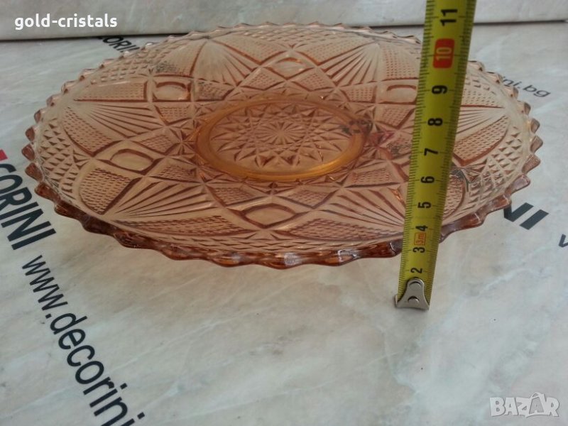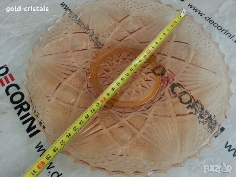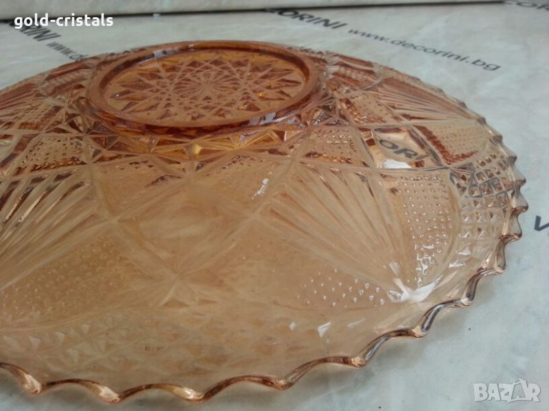 Антикварна голяма гравирана фруктиера купа чиния поднос цветно масивно стъкло гравирана стара старинна ретро арт декор винтидж колекция кристално стъкло цвят кехлибар стари антикварни предмети обзавеждане за дома и семейството подходяща за подарък за ценители и колекционери