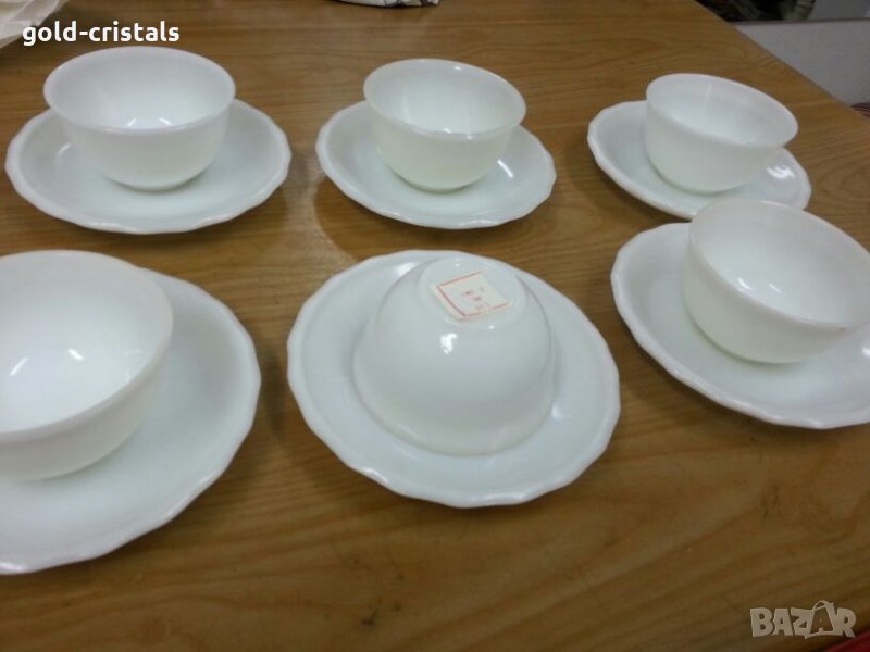 опал опал чашки филджани купички с чинийки закалено стъкло подходящ за крем карамел крем брюле 12 части 6бр чашки филджани и 6бр чинийки неизползвани налични два сервиза цената е за един брой сервиз комплект сет лот стар старинен антикварен арт декор винтидж колекция стари старинни антикварни предмети обзавеждане за дома и семейството подходящи за подарък за ценители и колекционери чаши чинии закалено стъкло