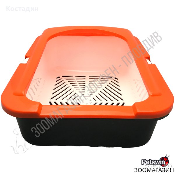 Котешка Тоалетна - с Борд - 50/38/19см - Оранжев/Черен - Ръчно Самопочистващ се Съд