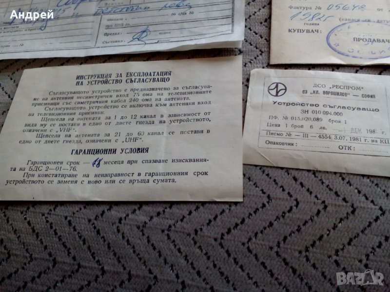 Лот документация Телевизор София 81