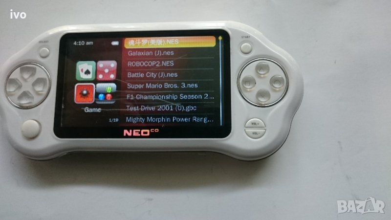 игра нео с страшно много вградени игри.има и доста екстри.има лек проблем включва се само с зарядно.после си работи и батерията е добра.