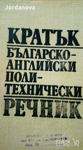 3. Кратък българско-английски ПОЛИТЕХНИЧЕСКИ речник- издателство Техника,464 стр.; съдържа около 35 000 термина от главните области на техниката: машиностроене, електротехника,минно дело,текстилна и селскостопанска техника,автомобилен,въздушен,воден,железопътен транспорт,топлотехника, лесотехника и др.; научни термини от математика,физика, химия, механика; съвременни клонове на техниката- изчислителна, телевизионна,