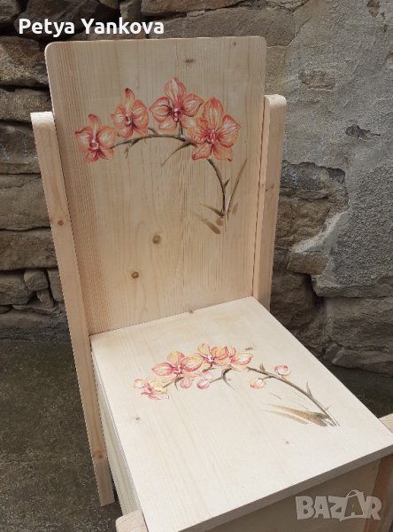 дърво, тегло 9 кг. Размери- височина на облегалката- 82 см., височина
