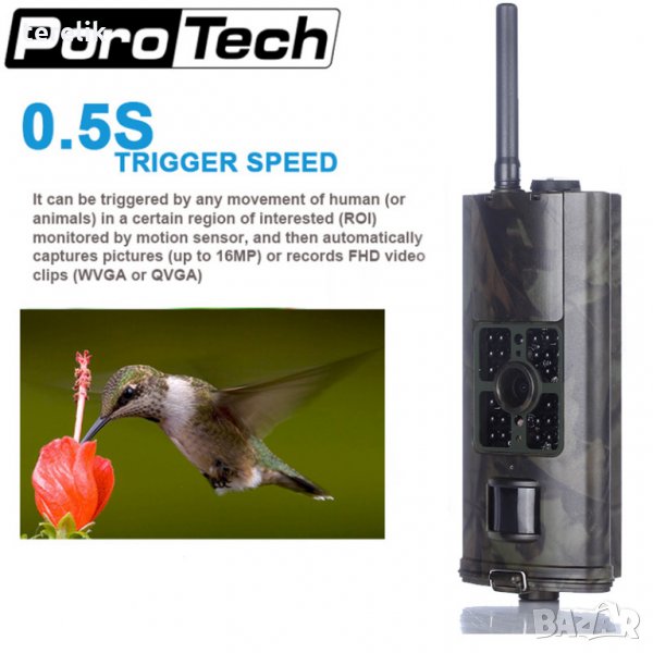 Бързата скорост на задействане, и свръх чувствителния сензор (PIR) за движение, предоставят на камерата качествено заснемане в реално време, като автоматично изпраща файл/снимка на телефона или имейла ви!