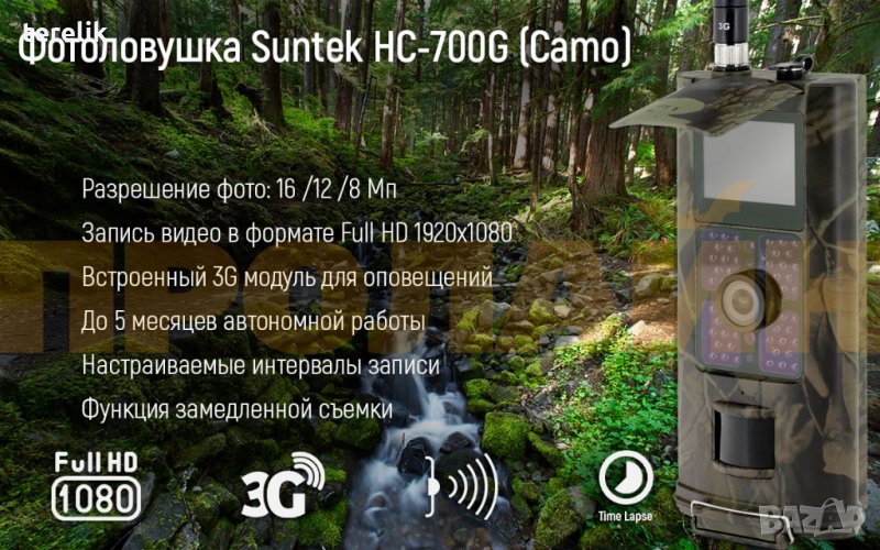 С поддръжка на нощна визия, команда „Timelapse“ за работа (заснемане) в определено време и допълнителни функции като интервали, времеви маркировка, таймер, защита с парола, sms управление, правят HD камерата широко използвана при лов, наблюдение на диви животни, сигурност вкъщи и разузнаване на местности.