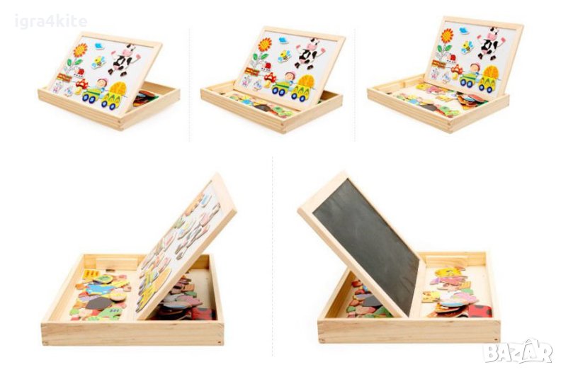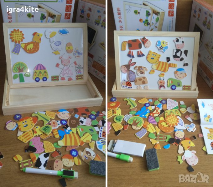 Mагнитна дъска с две страни Ферма-2 с магнити на магаренце,крава,прасенце,кон..