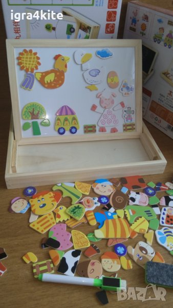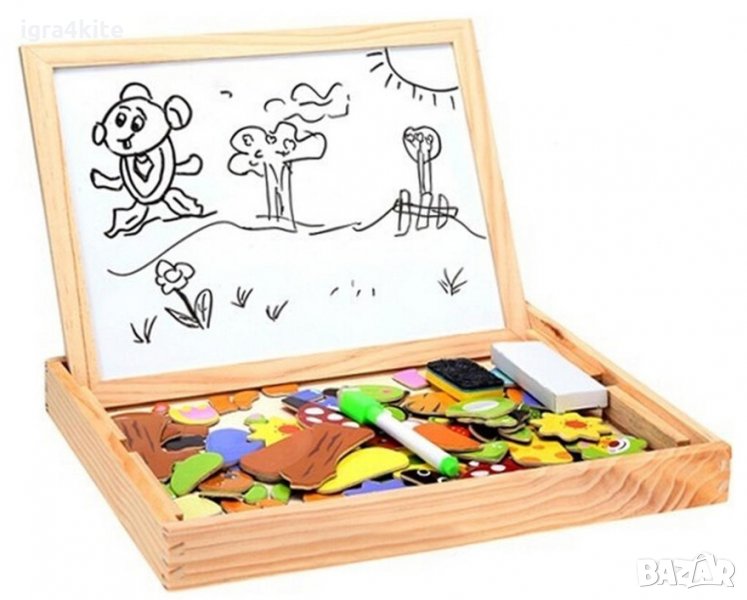 Бялата представлява ламинат на който да може да залепват дървените магнитни фигури,
