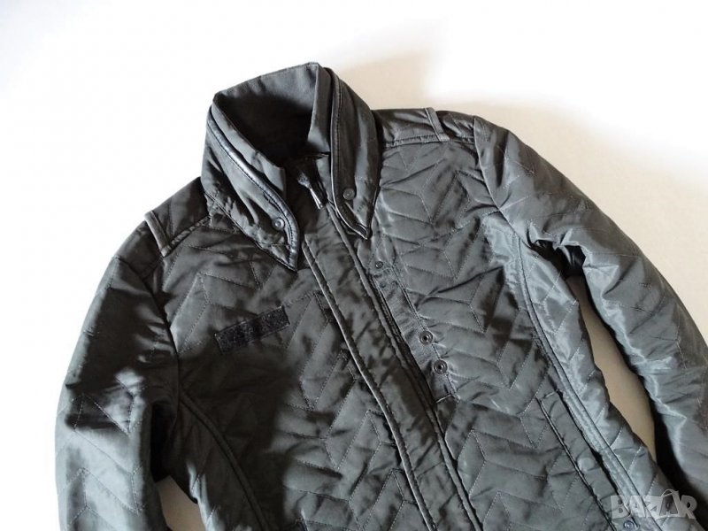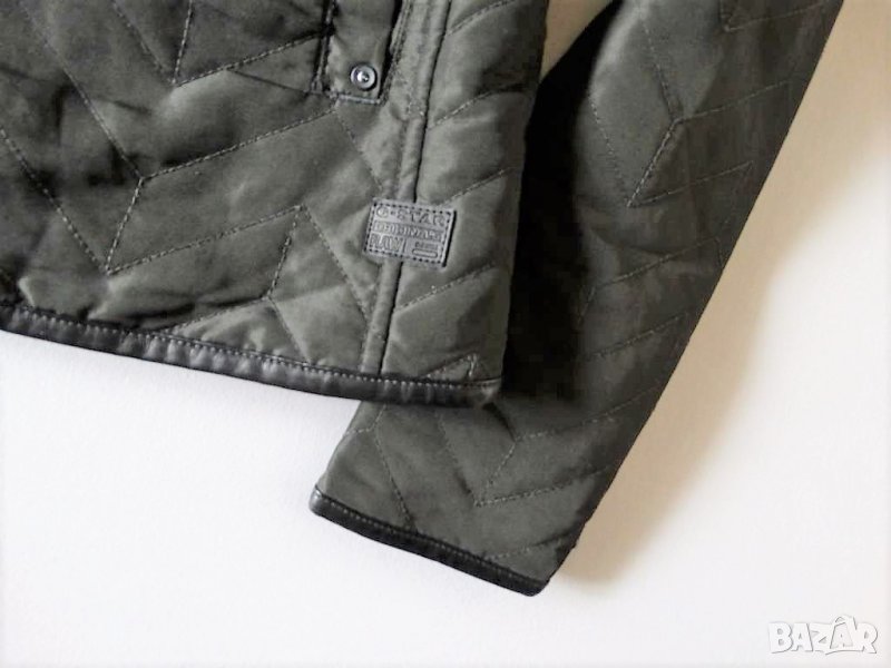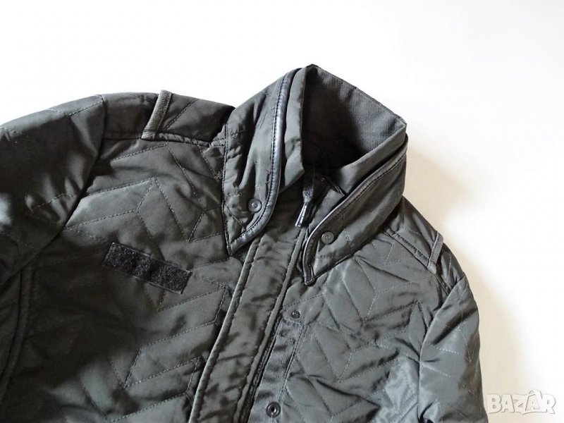 G star пролетно яке, вталена кройка, кожени елементи, войнишко зелено.