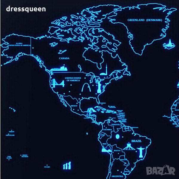 1503 Светеща световна карта за изтриване Travel Life → Обява 25010945