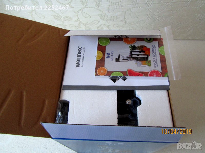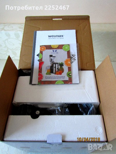 Характерна особеност е простотата на почистване и поддръжка на устройството. Всичко се осъществява бързо и не изисква досадно почистване на отделни елементи и труднодостъпни кътчета. Просто блокирайте изхода с капачката за изхвърляне на сока, изсипете топла вода и стартирайте двигателя, а сокоизстисквачка ще свърши работата за вас. В случай на ръчно почистване, трудностите са незначителни - трябва да разглобите отделните елементи и да изплакнете под течаща вода - нищо не е по-лесно. Размери – 235/168/543 мм, тегло – 6 кг. Сокоизтисквачката е чисто нова , получена като нежелан подарък. Намира се в Пловдив, за страната изпращам с Еконт, за сметка на купувача.