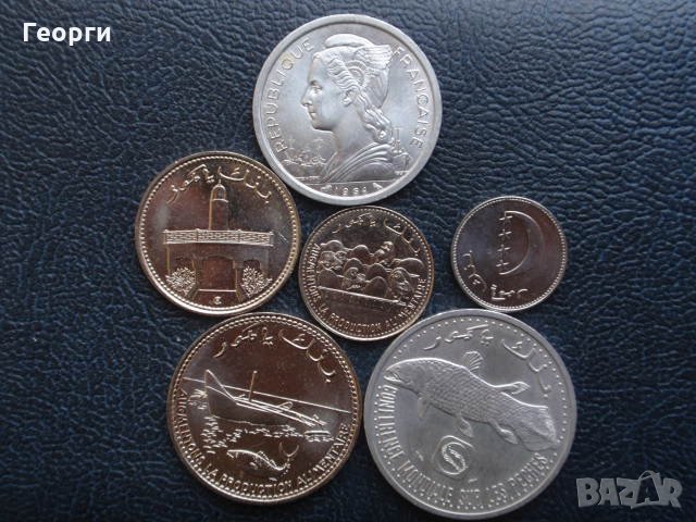 лот от 6 монети Коморски о-ви (1947-2017), обхващащи 2 периода: