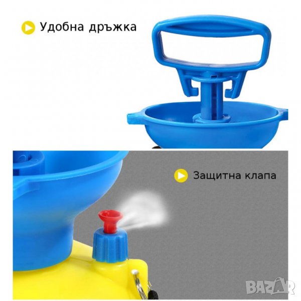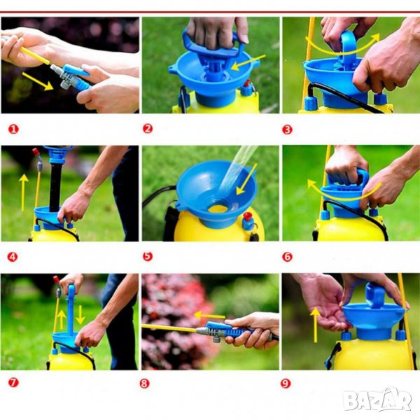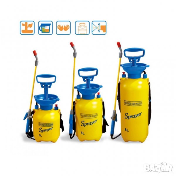 Това е градинска пръскачка с въздушно налягане с раменна лента за земеделска и градинарска употреба. Можете да изберете капацитет на резервоара от 5л или 8л. Тази градинска пръскачка е лесна за използване и перфектна за мъгла и накисване. С автоматична защита за освобождаване на налягането и дизайн на предпазния клапан, е много практичен и безопасен за употреба. Има ключа за заключване на пръскащата глава. Дебелите стени на резервоара го правят издръжлив и стабилен продукт, така че можете да бъдете сигурни в покупката. Буталото за създаване на налягане е с удобна дръжка. Тази пръскачка е съвместима с повечето течни торове, плевелни убийци, пестициди, хербициди, фунгициди и други.