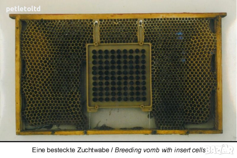 Маточният кладенец с приставната клетка се натиска върху клетъчния носител, който е залепен в развъдната летва. Най-късно до 11-ия ден маточните клетки, които са готови за излюпване, трябва да бъдат обучени (защитени) в защитни клетки (арт. № 040).