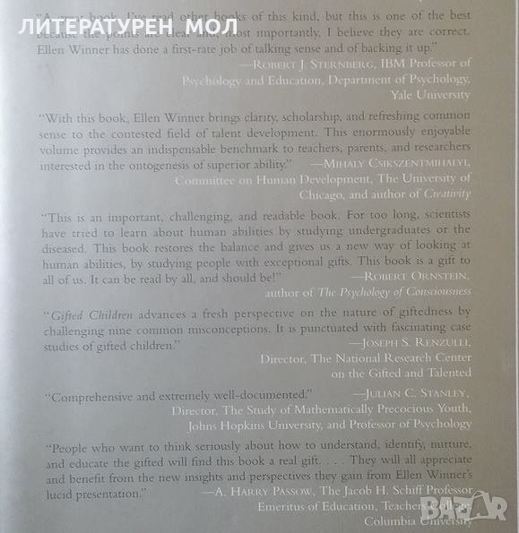 In this fascinating book, Ellen Winner uncovers and explores nine myths about giftedness, and shows us what gifted children are really like.Using vivid case studies, Winner paints a complex picture of the gifted child. Here we meet David, a three-year-old who learned to read in two weeks; KyLee, a five-year-old who mastered on his own all of the math concepts expected by the end of elementary school; and Nadia, an autistic and retarded "savant" who nevertheless could draw like aRenaissance master.Winner uses her research with these and several other extraordinary children, as well as the latest biological and psychological evidence, to debunk the many myths about academic, musical, and artistic giftedness.Gifted Children also looks at the role played by schools in fostering exceptional abilities. Winner castigates schools for wasting resources on weak educational programs for the moderately gifted. Instead, she advocates elevating standards for all children, and focusing our resources for gifted education on those with extreme abilities--children who are left untouched by the kinds of minimal programs we have today.