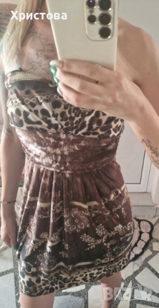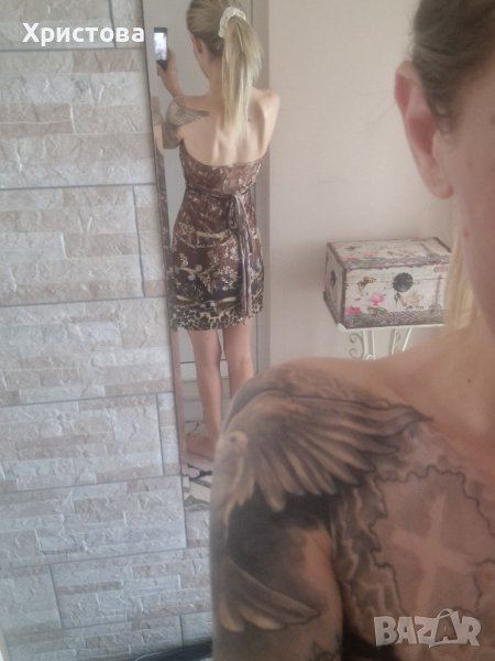 Кокетна лятна рокля за ежедневието или плажа от ликра в нюанси на кафявата гама. Моделът е без презрамки, с вградени подпълнки. Дължината е над коляното. При гърба е с частичен ластик. Има зашит колан отзад от самия плат и се вталява според фигурата или предпочитанието. Има еластан. Посочен е универсален размер за дами от С, М или Л. Символични цени на всички дрешки в профила ми. Опция тест и преглед. Доставка с отстъпка до офис на ЕКОНТ. Опция тест и преглед. 0899243418
