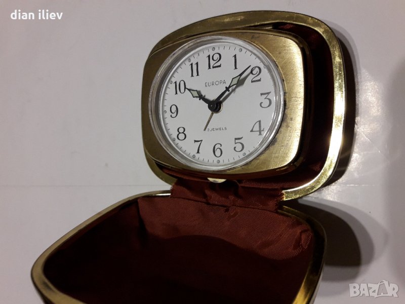 Стар механичен туристически будилник ЕВРОПА, часовника работи и звъни много точно състояние видно на снимките.