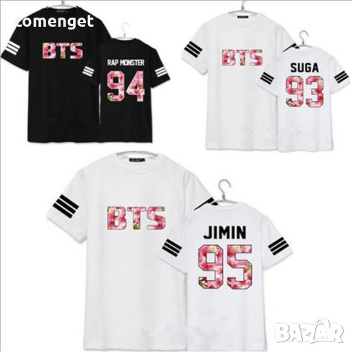 Мъжки и дамски тениски BTS с име и номер по ТВОЙ избор. В наличност са всички размери от XS до 3XL! Разполагаме с над 10 ЦВЯТА!