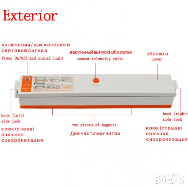 Описание:Уред предназначен за вакуумиране на храна. Постига се невероятен ефект, свежестта и качеството на храната се запазва за до 3 пъти по-дълго време. Вакуумирането като процес, премахва излишния въздух и удължава свежестта на храната, която съхранявате в хладилник или фризер. Подходящ и за запечатване на различни зърнени и житни култури, ядки, семена, суперхрани и много други, за перфектното им съхранение и предпазването от навлажняване и гранясване (при съхранение в хладилник). Храната, съхранявана във вакуумирани пликове, се предпазва от поемане на аромати и миризми на други храни.