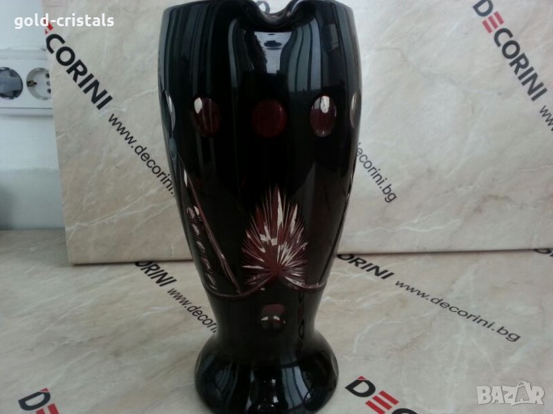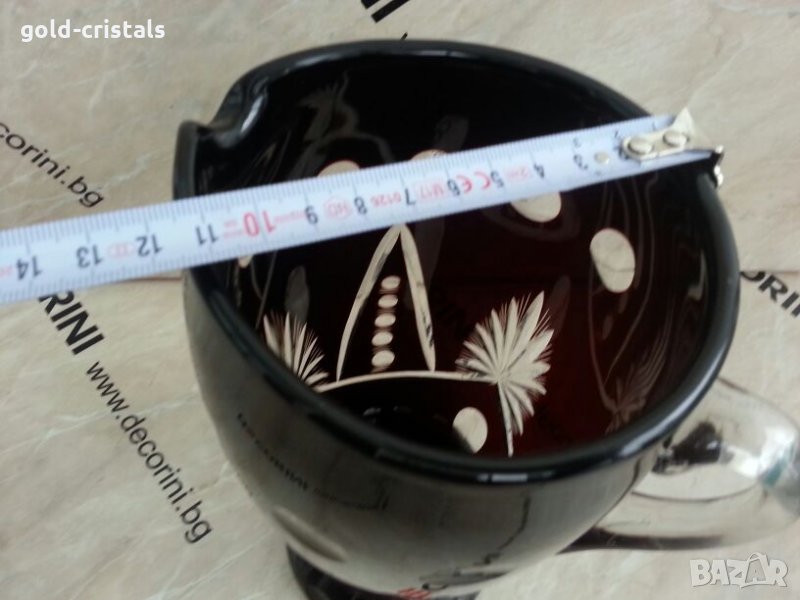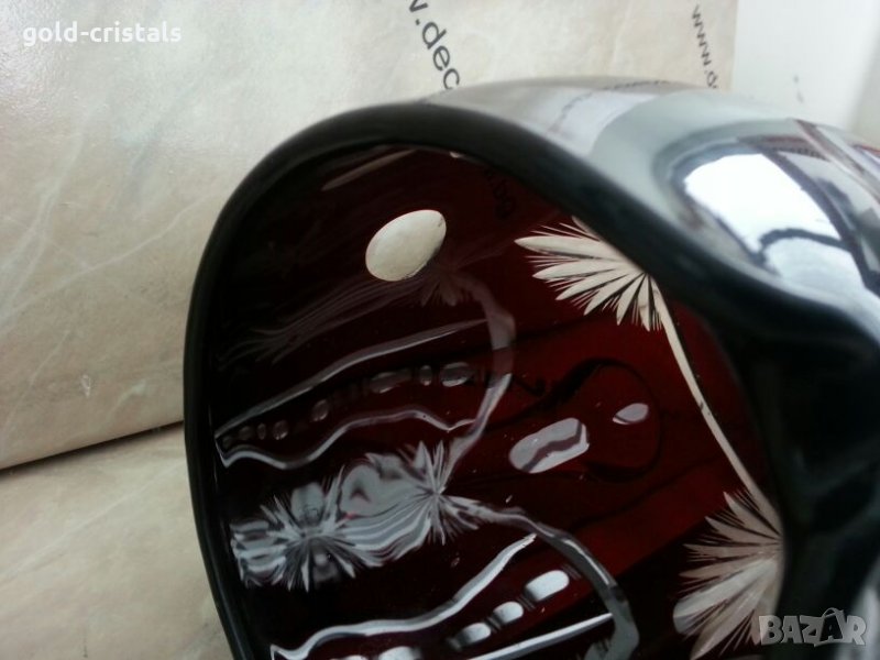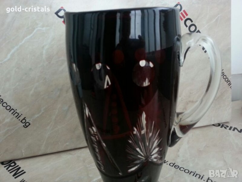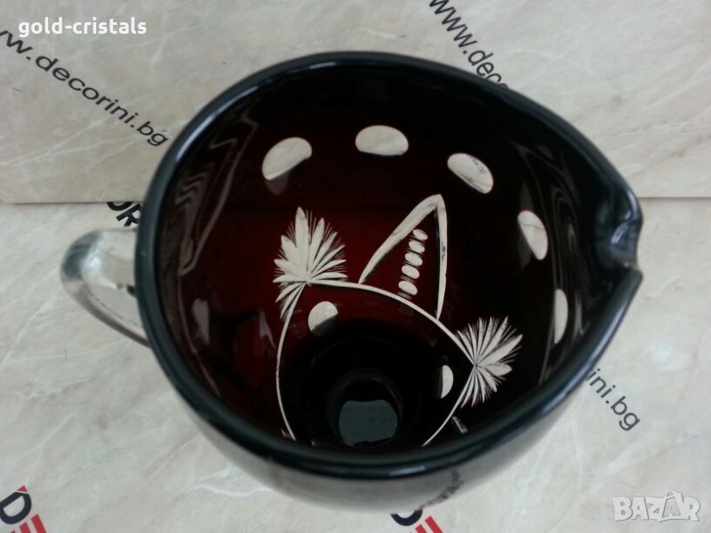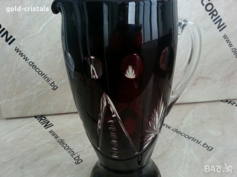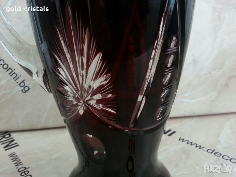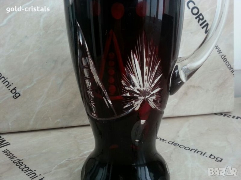 кристална кана голяма 2 литра рубинено червено цветен червен кристал гравирана масивна и тежка кристално стъкло стара старинна ретро арт декор винтидж колекция кристално стъкло за вода вино сок стари антикварни предмети обзавеждане за дома и семейството