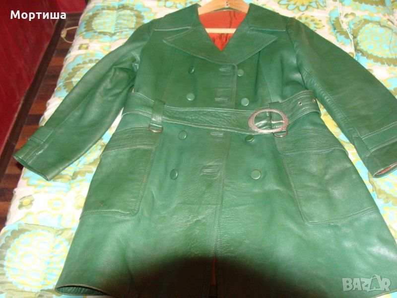 Разкошен шлифер от естествена телешка кожа ,няма цип само копчета двуредно винтидж модел .цветът е като на първите 3 снимки Дължина 85 см ,мишници отпред едностранно 57 см рамена 40 см ръкав 55 см Леки забележки които са поправими с боя ( последни снимки ) КРАЙНА ЦЕНА БЕЗ БАРТЕРИ поради зачестили злоупотреби не изпращам със проба