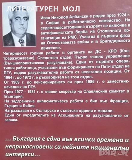 Иван Николов Албански е роден през 1924 г. в София в работническо семейство. На 17 годишна възраст се включва в антифашистката борба. Участва в първата фаза на Отечествената война и в бригадирското движение. Четиридесет години работи в органите на ДС - контраразузнаване, Следствен отдел, Първо главно управление. Един от първите оперативни работници, участвали във формирането на Пети отдел на ПГУ, водещ разузнавателна работа от нелегални позициии. От 1964 г. до 1972 г.е ръководител на този отдел. От 1969 г. до пенсионирането си е заместник-началник на ПГУ. През 1977-1981 г. е главен секретар на Славянския комитет в България. На задгранична дипломатическа работа е бил във Франция, Гърция и Либия. Награждаван е с български и съветски ордени и медали. Един от учредителите на Асоциацията на разузнавачите от запаса.