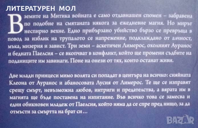 В земите на Митика войната е само отдавнашен спомен - забравена по подобие на смятаната някога за ежедневие магия. Но мирът неспирно вехне. Едно прибързано убийство бързо се превръща в повод за изблик на натрупалото се напрежение, подклаждано от алчност, мъка, мизерия и завист. Три земи - аскетичен Лимерос, охолният Ауранос и бедната Паелсия - се вкопчват в конфликт, който ще промени съдбите на поданиците им завинаги. Поне на онези от тях, които останат живи.
