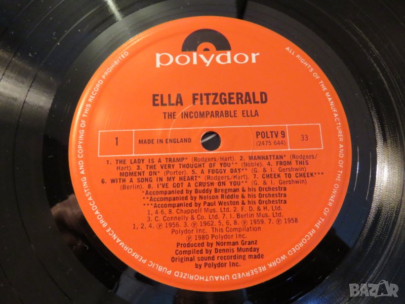 Грамофона плоча Ella Fitzgerald - Incomparable - изд. 1980 г. - произведена и внос от Англия.